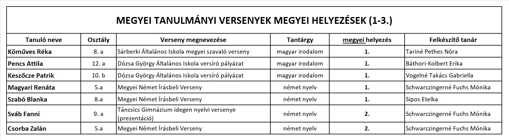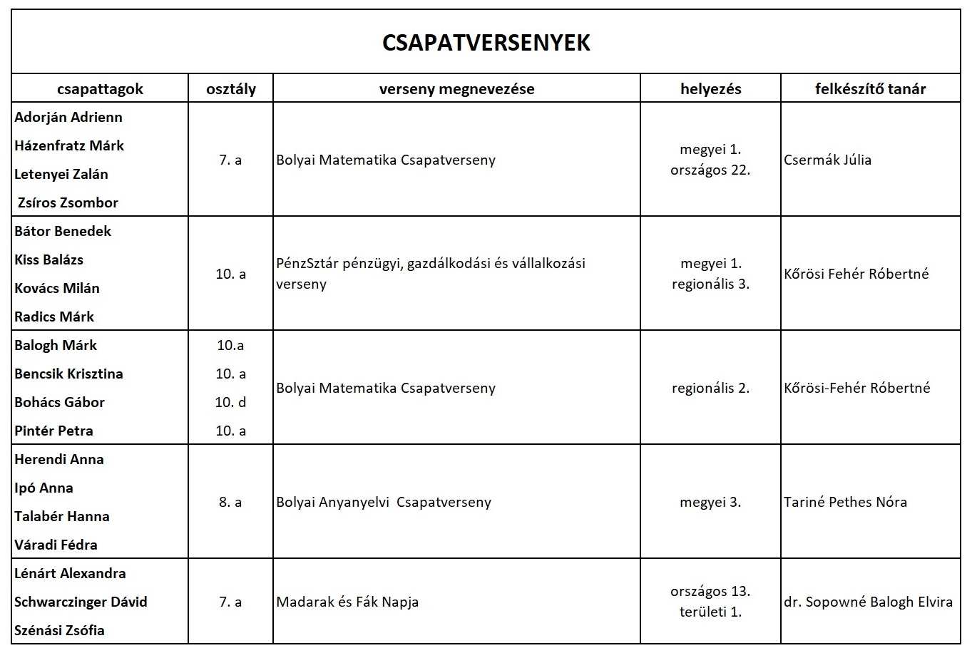 A legjobb eredményért felajánlott három polgármesteri különdíjból kettőt bárdosos diák kapott: Fóris Karina, 8. a (balról 7.) - felkészítő tanára: Krcs Árpád - és Lutring Erika,11. a (balról 3.) - felkészító tanára: Vogelné Takács Gabriella