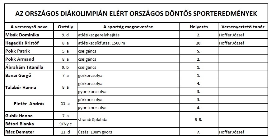 Pataki Péter az angol ének, Bense Brúnó a versmondó kategóriában szerzett arany minősítést. Agócs Attila a 6.a osztályból az AMI-val közösen lépett fel a színpadra. A csoport arany minősítést kapott.