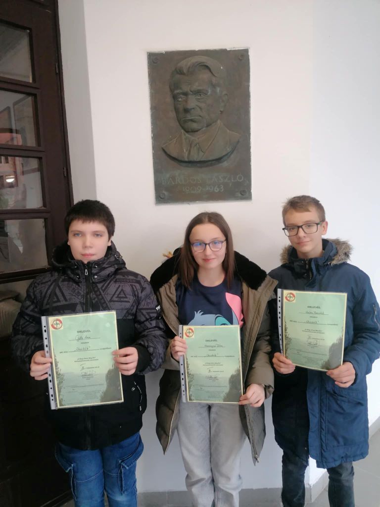 Az idén is Kőszegen rendezték meg az Időfürkész országos műveltségi vetélkedő döntőjét. A Bárdos László Gimnázium SzénbányÁszok csapatát Magyar Luca, Magyar Máté és Stankovics Júlia (8. a) alkotta. Felkészítő tanáruk Veréb Márta.