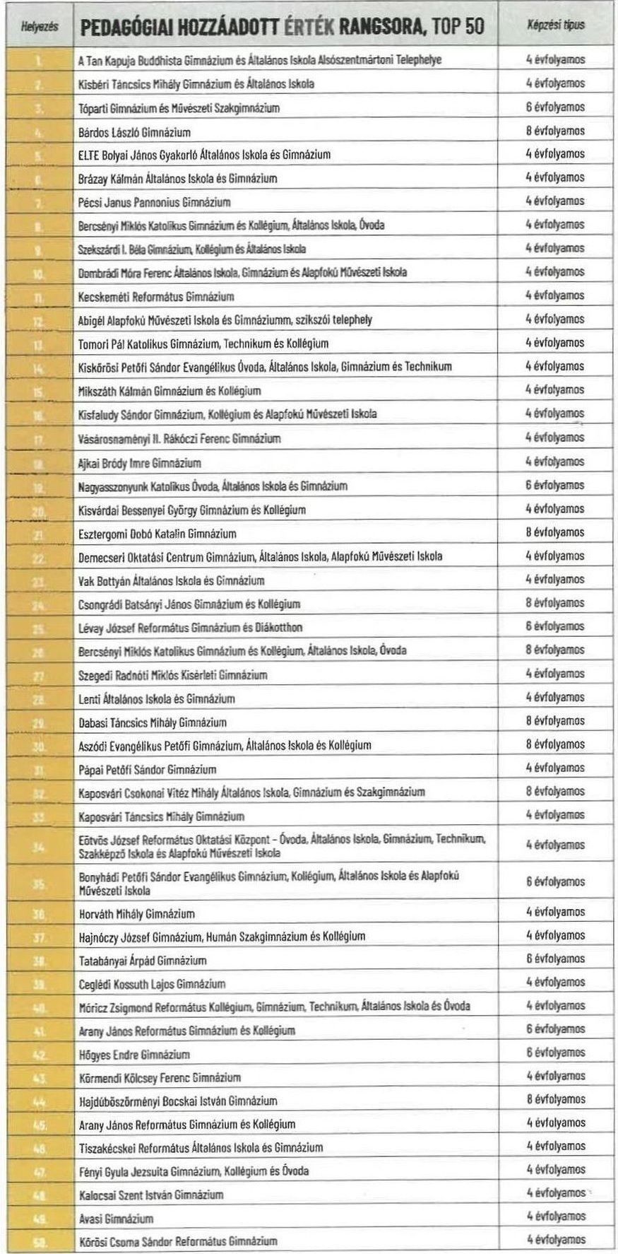 Iskolánk a pedagógiai hozzáadott érték alapján készített rangsorban országos negyedik helyen szerepel